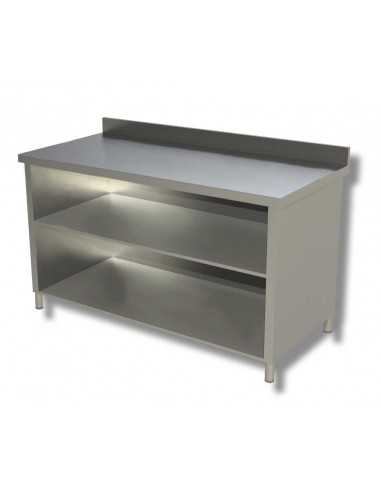 Stainless steel working table - Open - Model DSTAG - Stainless steel Aisi 430 - Internal shelf - Alzatina - Upper floor thickness cm 4 - Depth 60 - Various dimensions