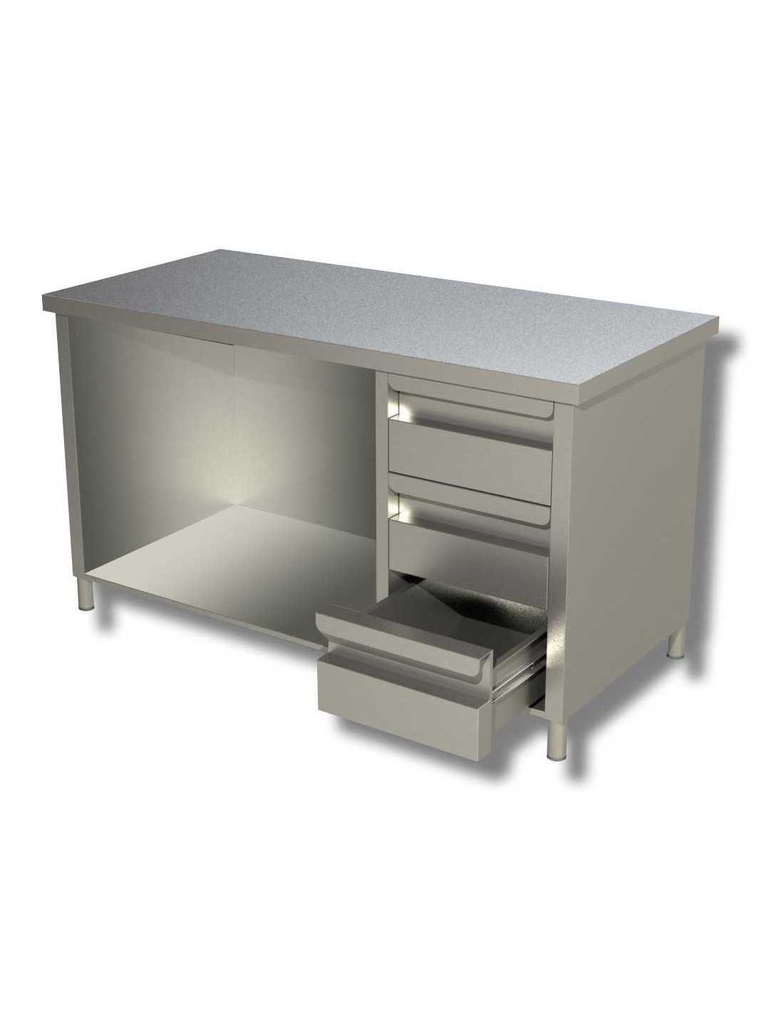 Stainless steel working table - Open - Model DSTAG2C - Stainless steel Aisi 430 - Right drawers - Upper top thickness cm 4 - Depth 70 - Various sizes
