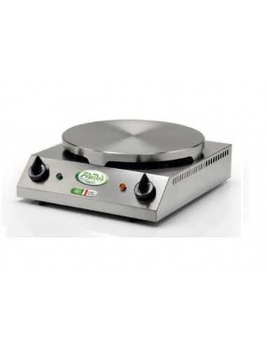 Single electric crepe maker - Model CPS40 - Stainless steel structure - Cast iron hob ø mm 400 - Power Kw 2.4 - Max temperature 300°C - Single-phase power supply - Cm 47 x 42 x 17.8 h