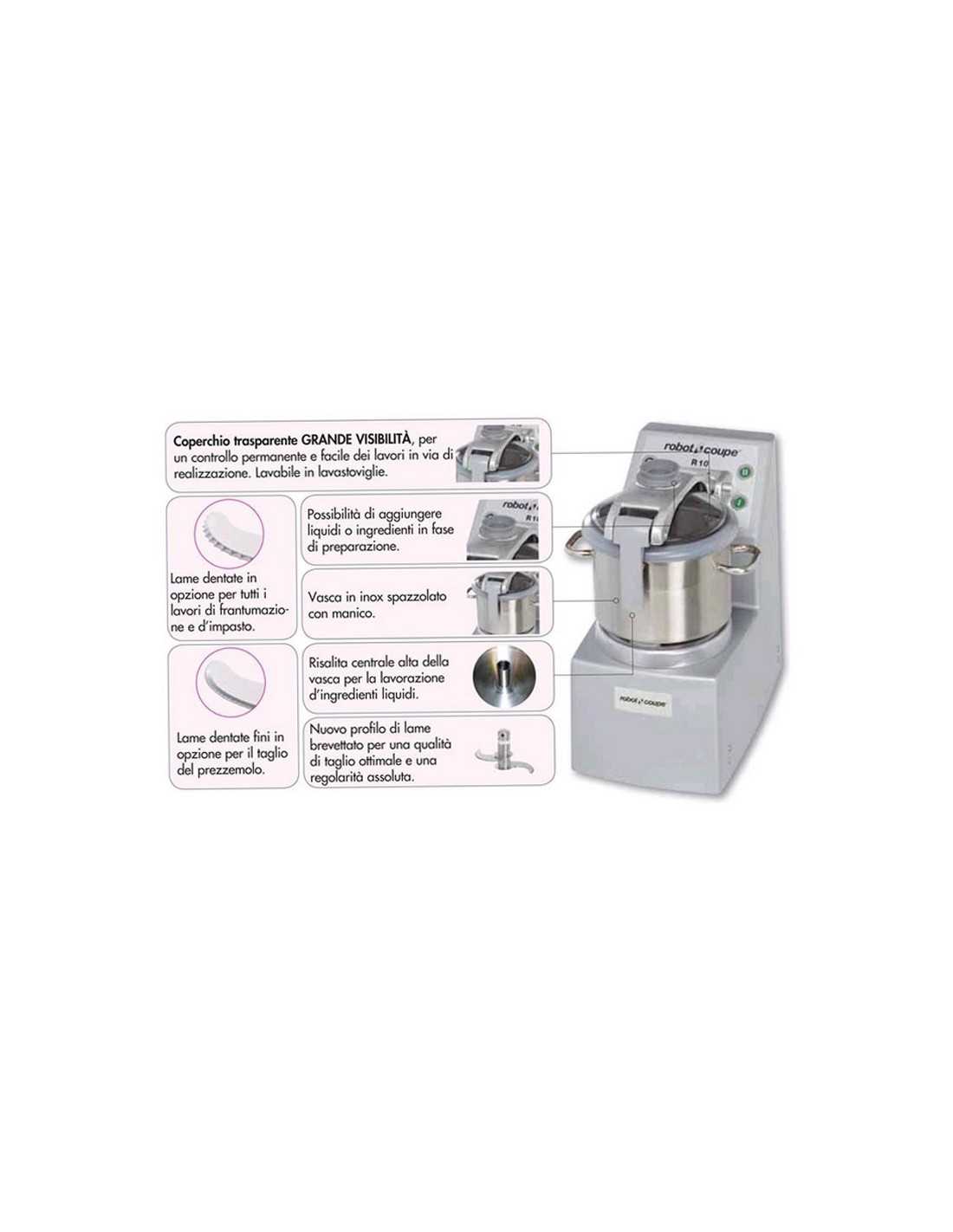 Floor Cutter - Model R 15 - Stainless steel tank capacity lt 15 - Capacity covered by 50 to 250 - N.2 speed - Power W 3000 - Three-phase power supply 400V/3/50Hz - Dimensions cm 37 x 61,5 x 62 h