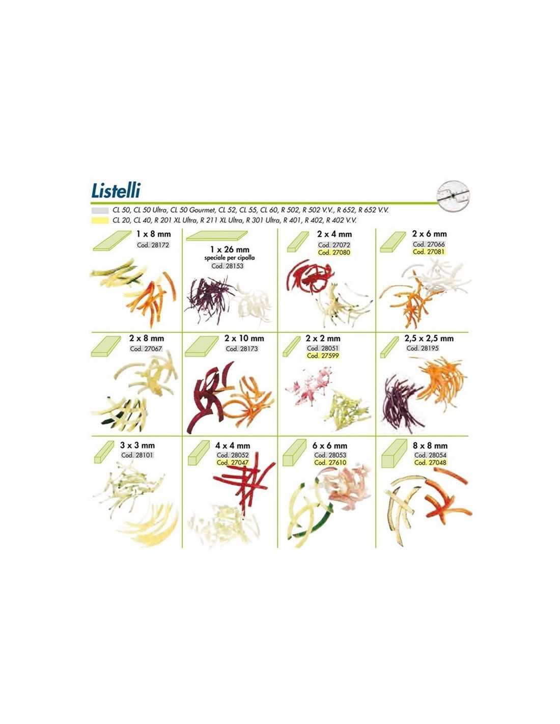 Disc for cubes - Diameter disc mm 175 - Consisting of 1 grid for cubes + 1 disc for slices - Cut thickness mm 8 x 8 x |