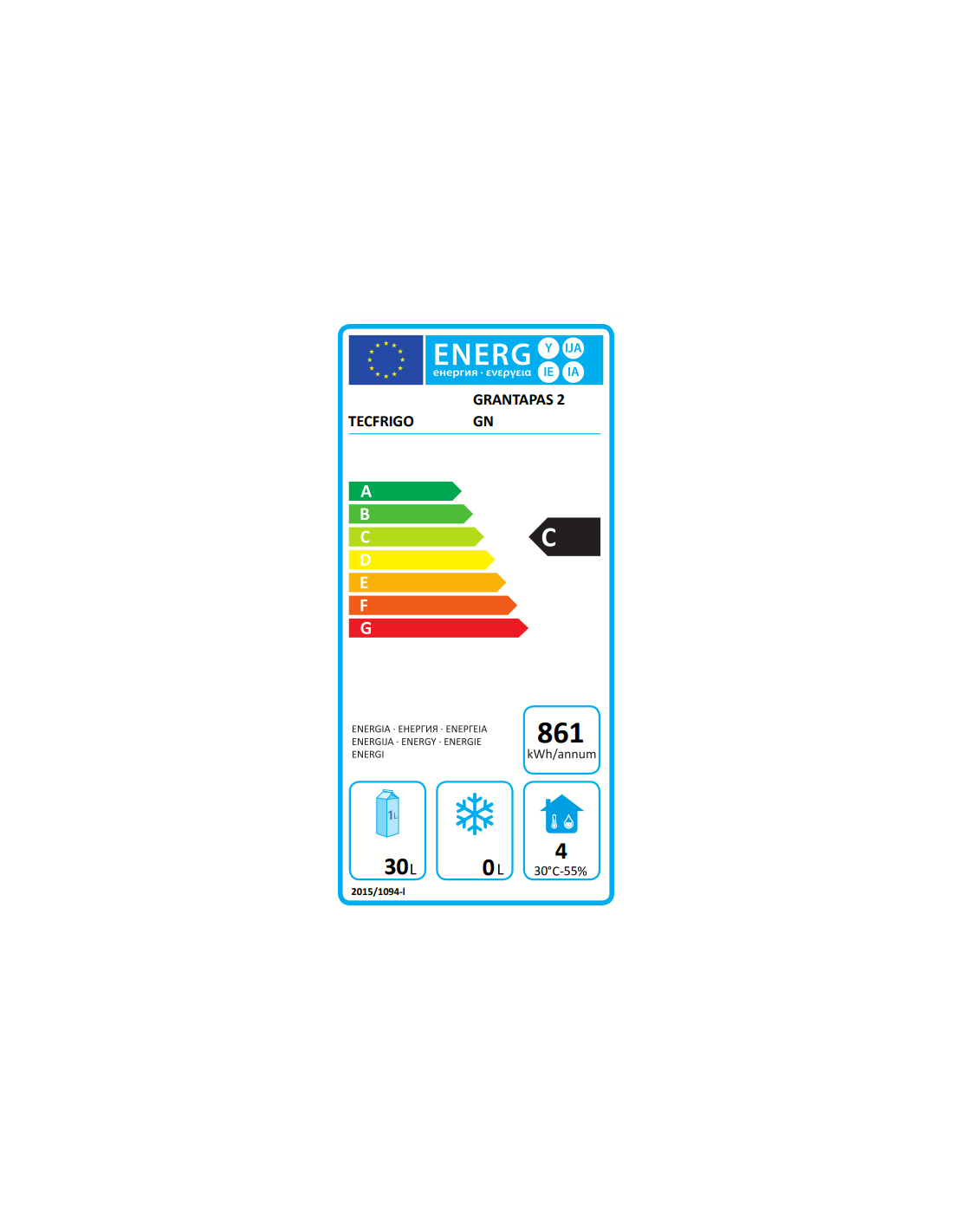 Counter display - refrigerated display case - Model GRANTAPAS2GN - For No. 6 basins GN 1/3 or No. 2 basins GN1/1 - Temperature +3°+5°C - Power W 265 - Static refrigeration - Refrigerant gas R290 - Lighting - Built-in motor - Cm 100.5 x 60.3 x 44.1 h