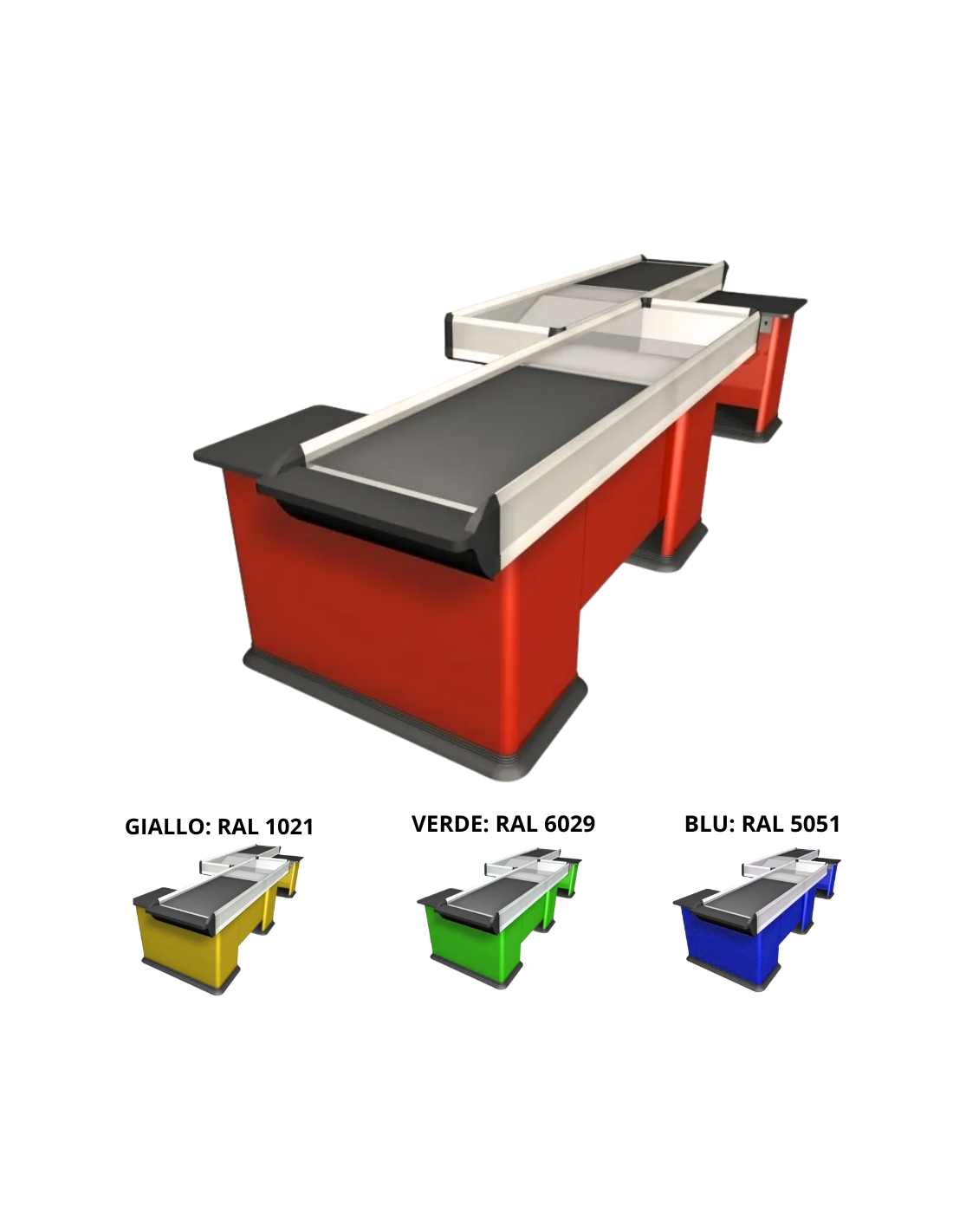 | Thanks to their pleasant line, characterized by the most modern Italian design, they develop an aesthetic that can be inserted in any commercial, food and non-food sector, always respecting the latest regulations CE and are characterized by the absence of edges and living corners, for the sheet painted with epoxy powders, for the work surface in polished stainless steel and for the finishes in non-toxic and shockproof materials |