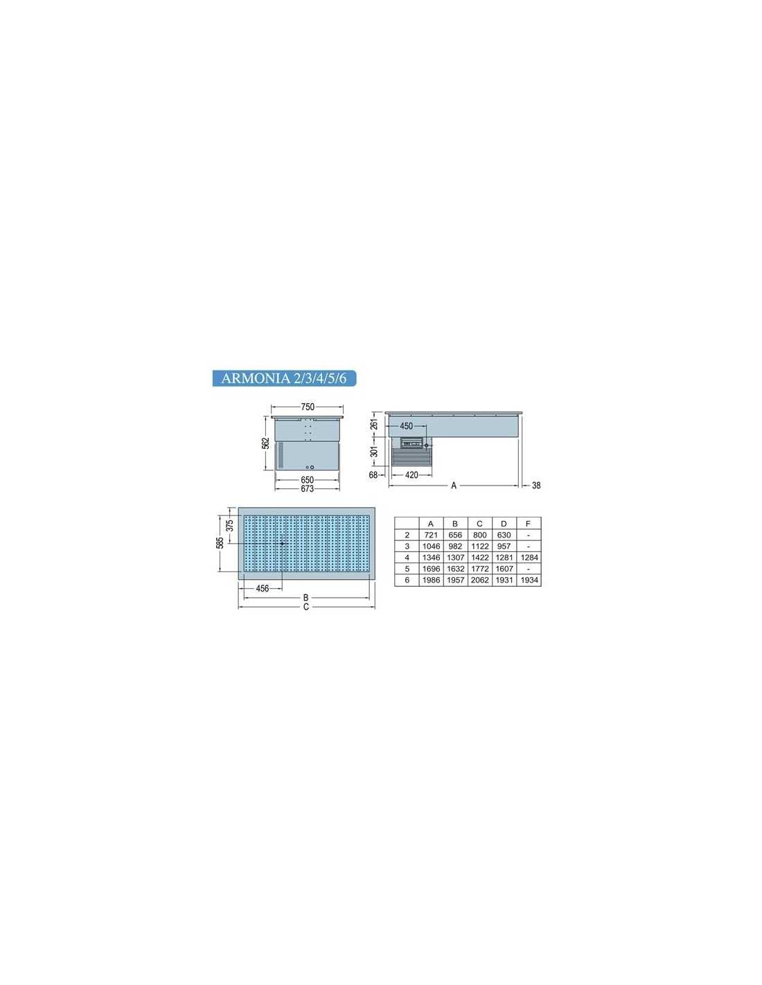Refrigerated recessed exposition tank - For ready meals or pastry - Temperature +4°/+10°C - Static Refrigeration - Automatic break-off - refrigerant gas R290 - Monophase - Size cm 112.2 x 75 x 56.2