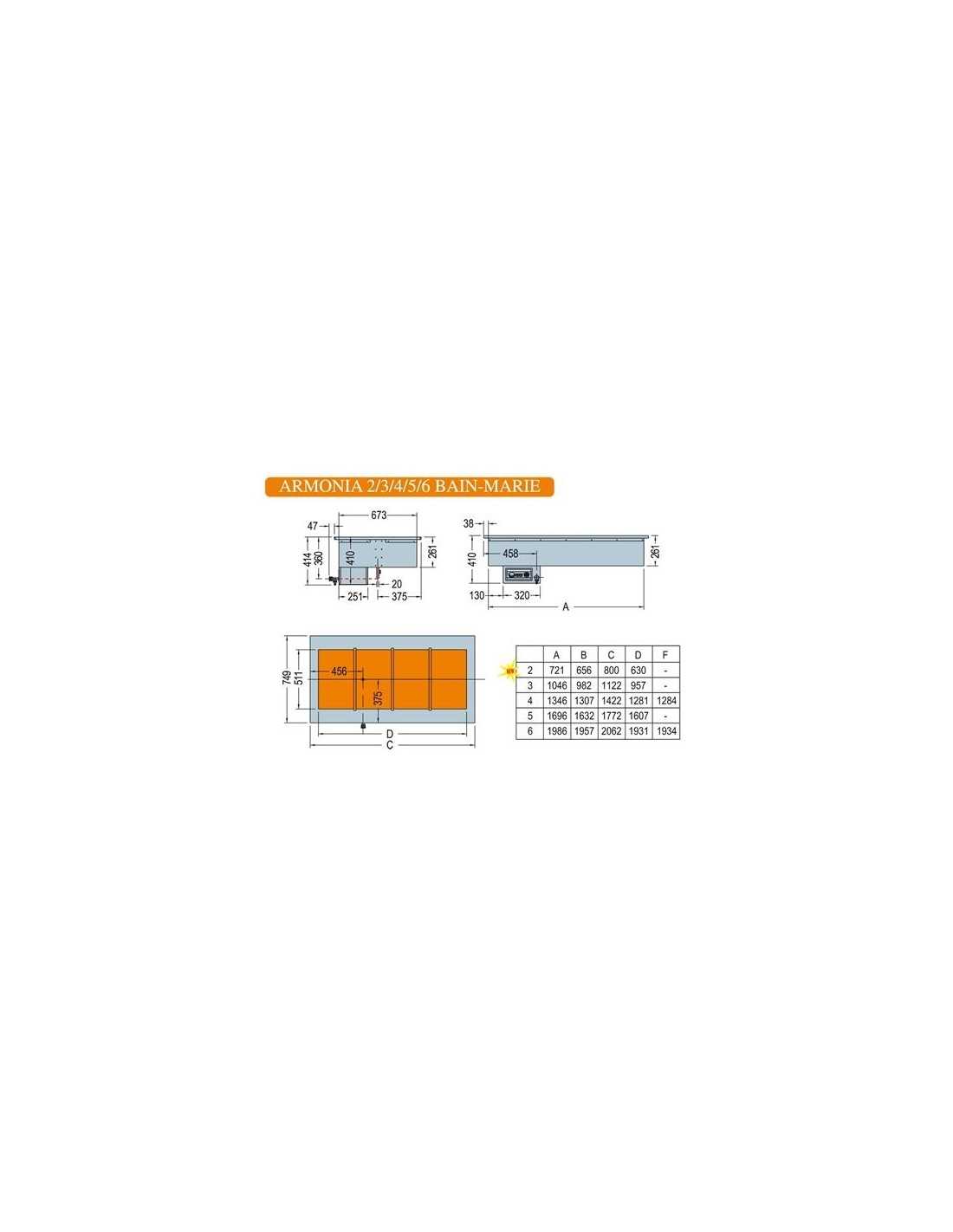 Exhibiting tank heated bath - For gastronomy -Temperature +30°/+90°C - Compatible Bacinelle GN 1/4 - 1/3 - 1/2 - 2/3 - 1/1 - 2/1 - Only basins of cm 15 height - Power W 2450 - Single-phase power supply V 230/1/50Hz - Weight kg 44 - Size cm 142.2 x 75 x 41.2 h