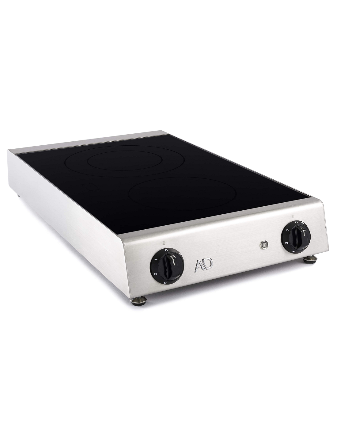 Hob - Model 999-004 - Infrared glass-ceramic hob - 2 cooking zones Ø 14.5/23 cm / Ø 18 cm - Power total kW 4.3 - Dimensions cm 35 x 60 x 8h