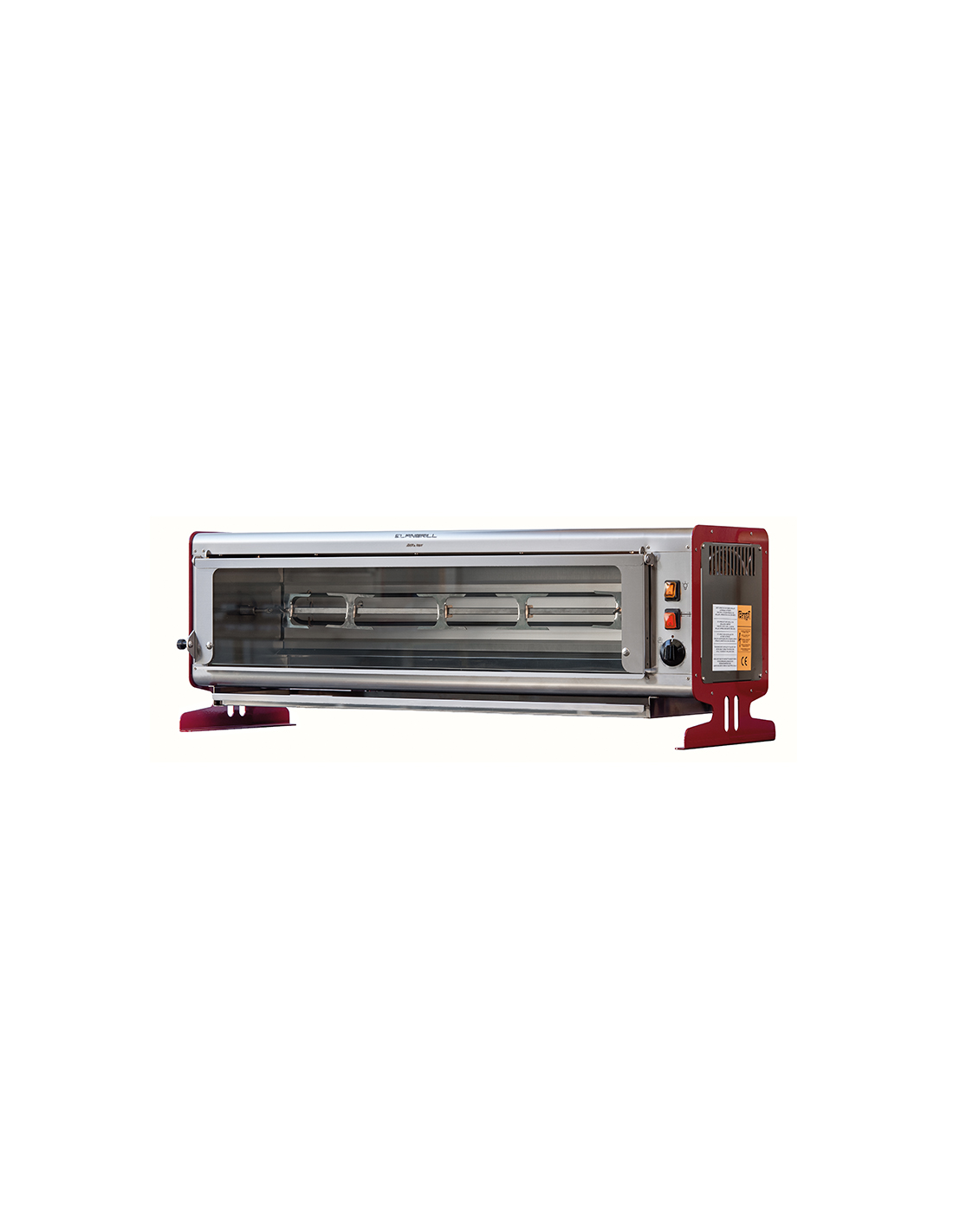 Electric Vertical Rotor - Model ELBA6P-E - Capacity No. 6 chickens - N.2 stainless tubular rod 12 x 12 mm - Rod length cm 54.3 - Power 2.8 Kw - Single-phase 230V - Size cm 70 x 39.1 x 46.1 h