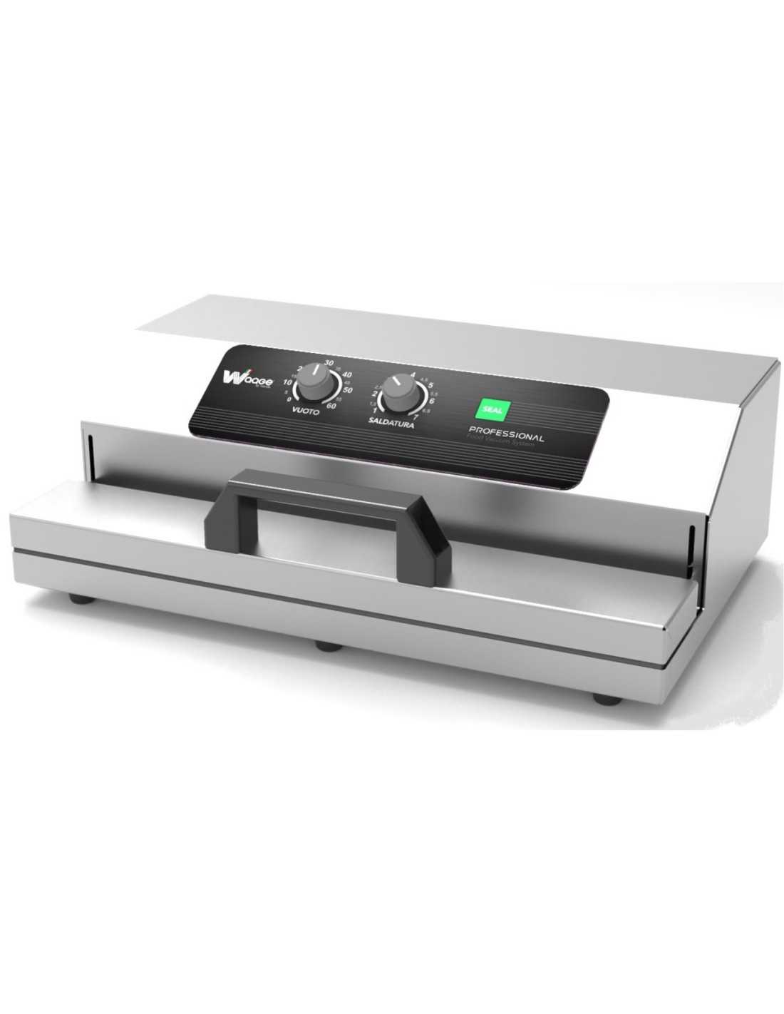 Vacuum Packaging Machine - Model FOOD - External suction -Empty pipe 17L/m - Welding bar: 370 mm - Bag width 350mm - Power supply 220V/1N - 50/60Hz - Power W 600 - Dimensions cm 37 x 24 x 11h