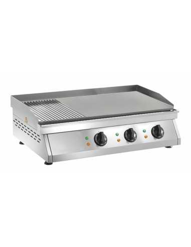 Electric fry top with smooth / ribbed surface cm 83.5 x 40