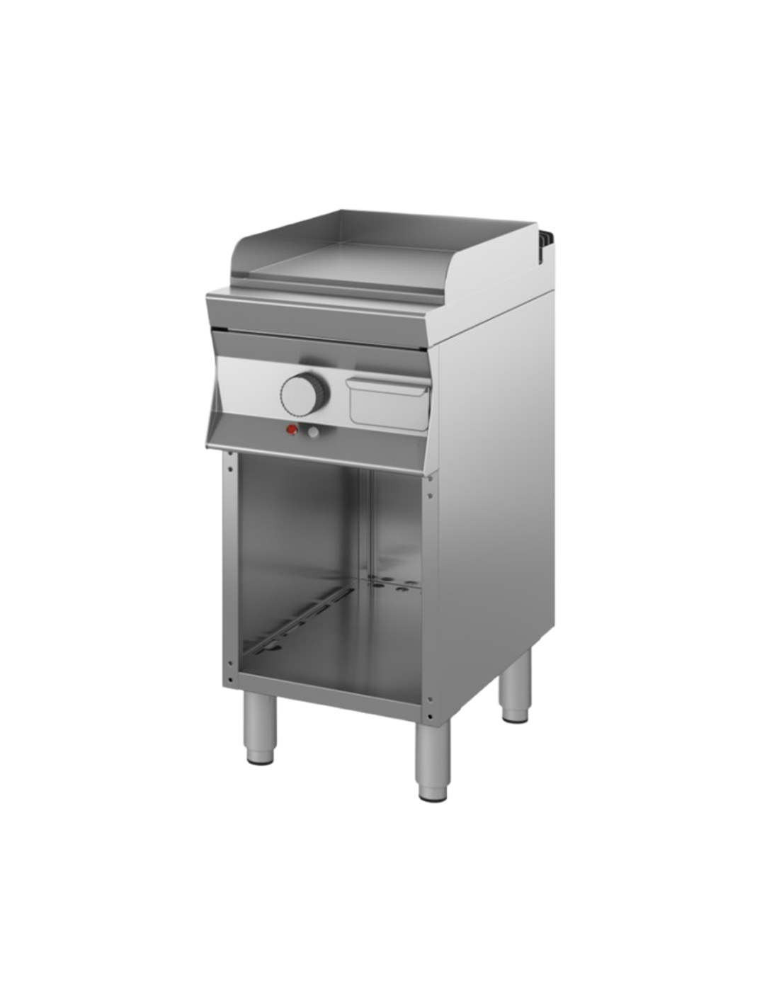 Electric FryTop - Smooth plate - Model 9CFTE1LACR - Open compartment - Chrome plate 4.0 - Power kw 7.5- Weight kg 77 - Size cm 40 x 90 x 90 h