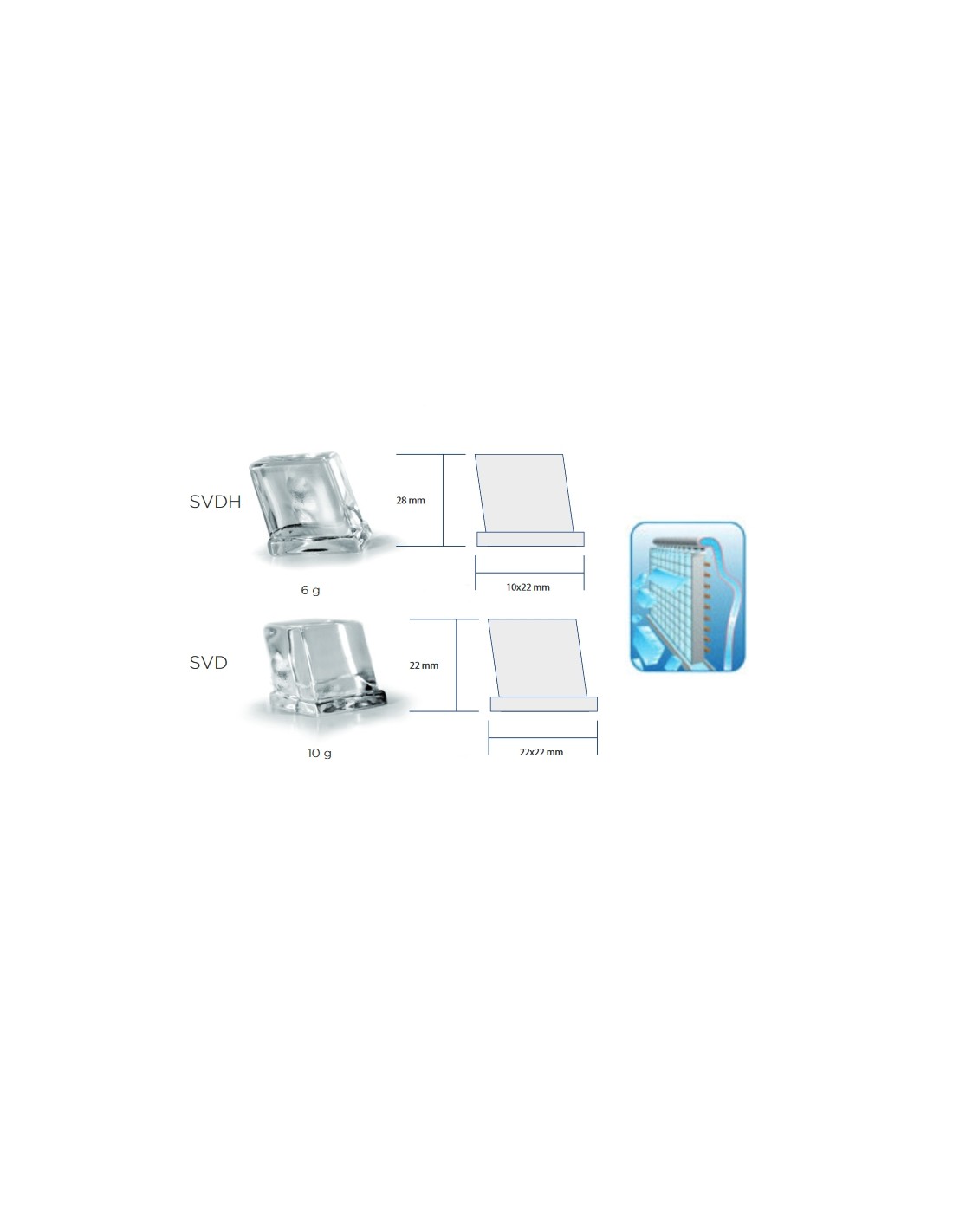 | Cube size | mm 22 x 22 x 22 h |