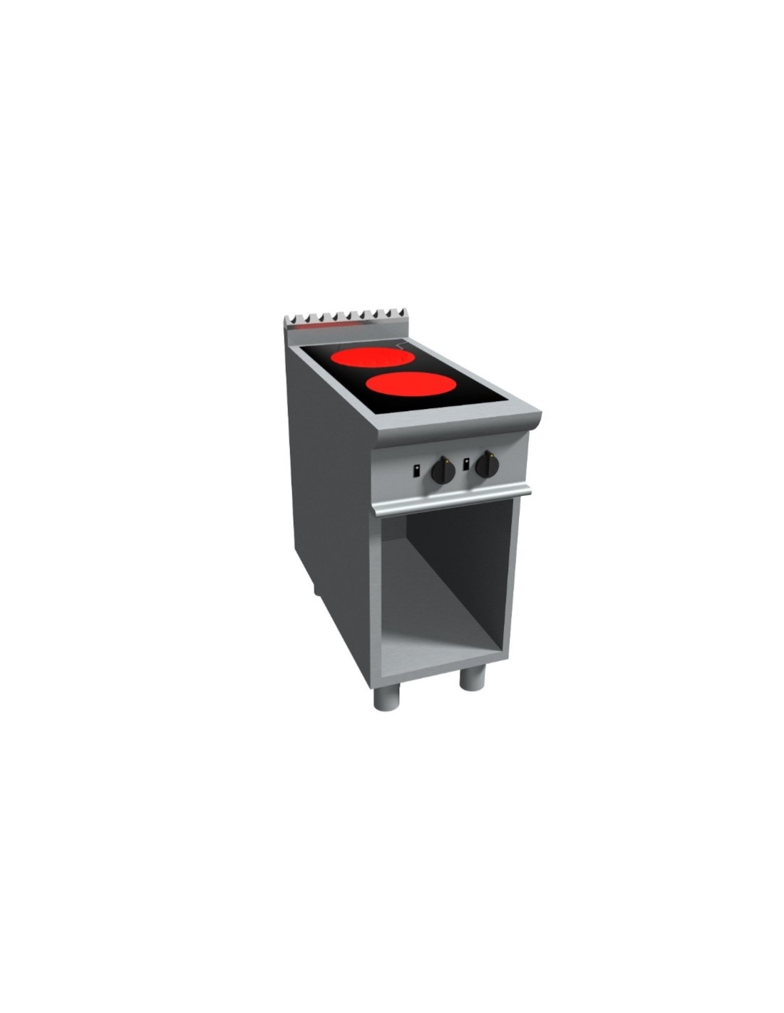 Glass-ceramic stove - Model L9CVE2BA - On open compartment- Power Kw 6- Cookers Kw 3 x 2 - Structure made entirely of stainless steel AISI 304 18/10 scotch brite - Dimensions 40 x 90 x85h