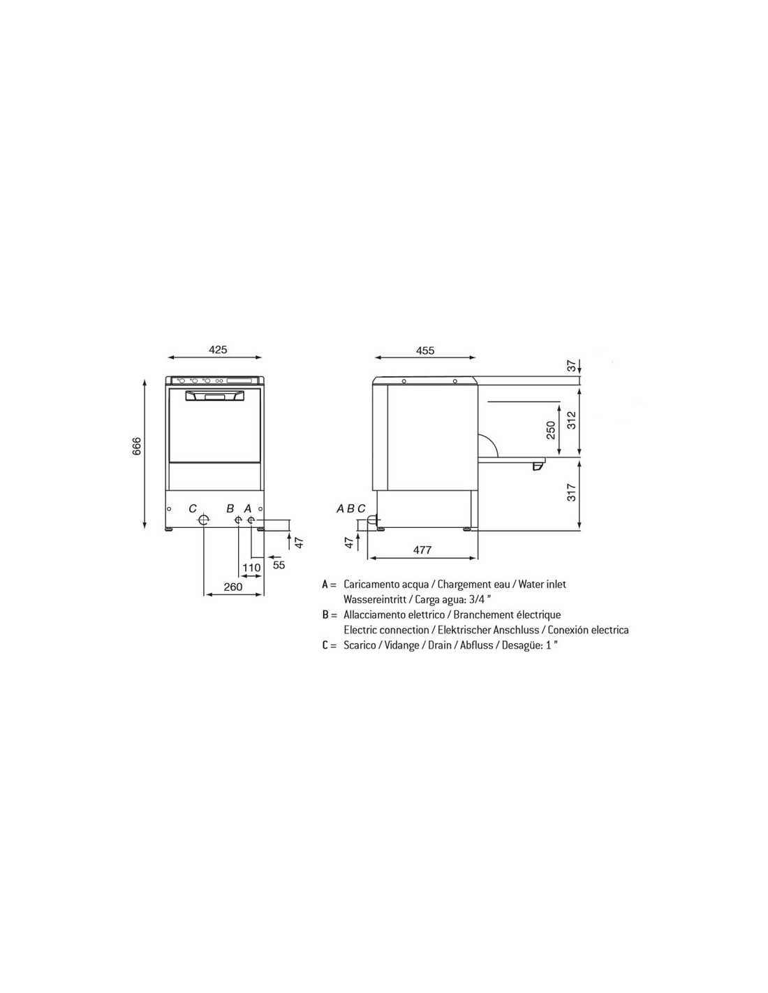 Glass washer basket cm 35 x 35 - Max height of glasses cm 27.6 - Cm 46.5 x 45 x 66 h
