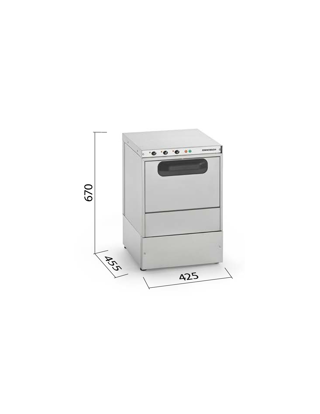 Glass Washer - Model: E35 - Useful passage maximum height cm 25 - with Drain Pump - with mechanical Rinse Aid Dispenser - Capacity tank 11 lt - Square basket cm 35 x 35 - Dimensions cm 42.5 x 45.5 x 67 h