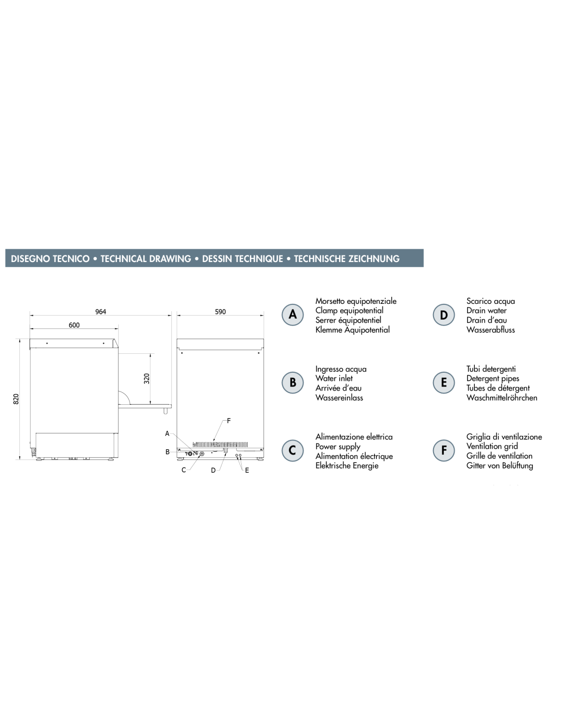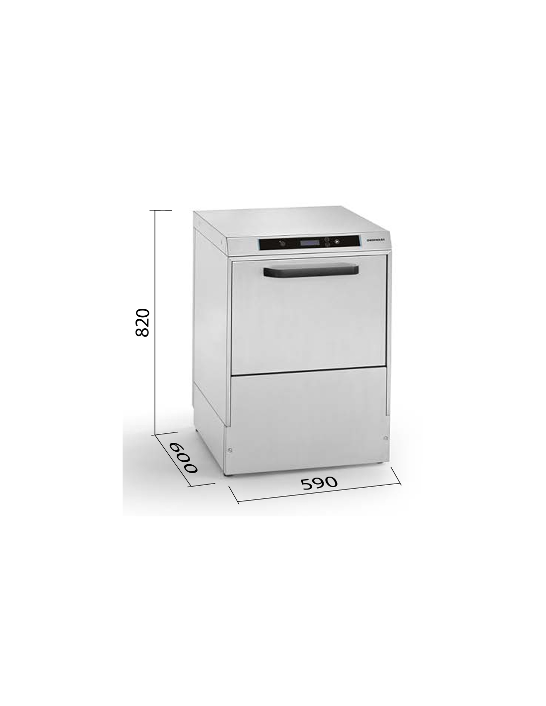 Dishwasher - Model: PR50 - Useful passage maximum height cm 32 - with Drain Pump - with Peristaltic Detergent and Rinse Aid Dispenser - Capacity tub 29 lt - Square basket cm 50 x 50 - Dimensions cm 59 x 60 x 82 h