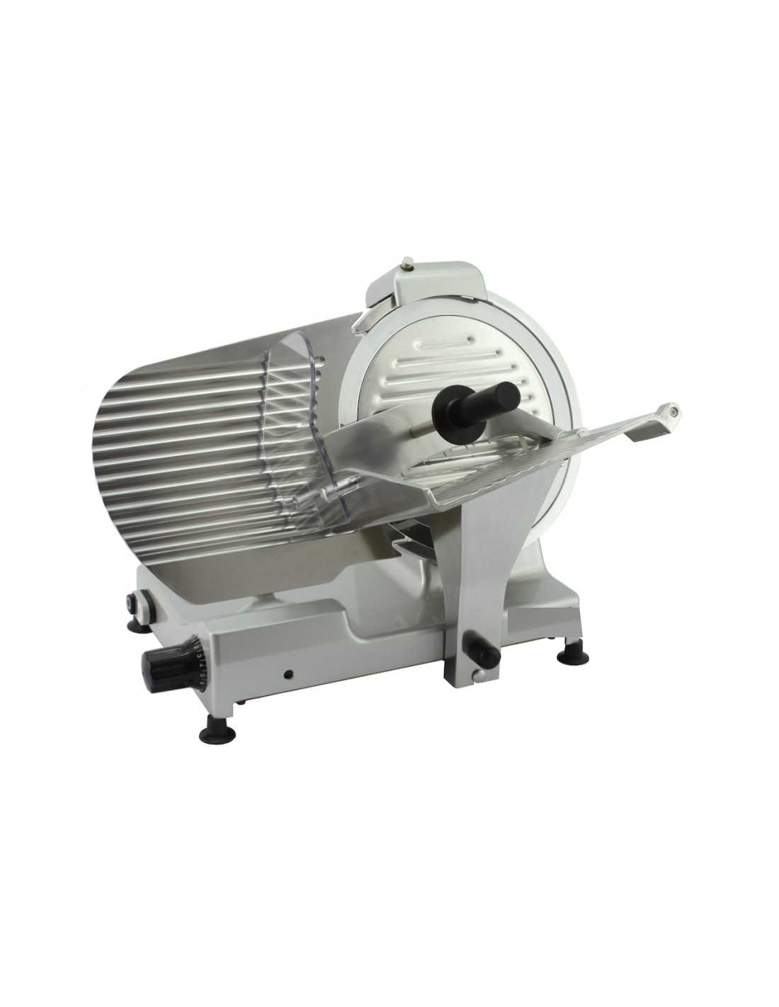 Professional gravity slicer - Blade ø 300 mm - Aluminium frame die-cast and painted - Double button luminous 24 V - Fixed sharpener - Ventilated motor - Dimensions cm 65x48x45 h