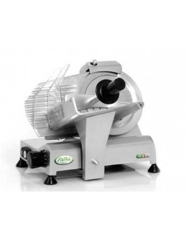 Slicing machine - Model 195 Gravity - Blade diameter mm 195 - Cutting capacity mm 140 x 140 - Cut thickness mm 0÷15 - Power Kw 0.15 - Single Phase Power - Cm Size 36 x 32 x 31 h