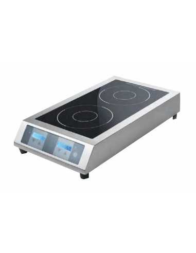 Induction plate - Stainless steel - Model BT350D - Temperature max 240°C - Power supply 400V - N°2 cooking areas - Dimensions cm 41.6 x 69 x 13