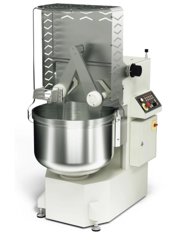 V/PROG/1PH (Monophase with variable speed) or INV/PROG/3PH (Triphase with variable speed) With inverter - 5 programmable steps (speed + time) - 99 recipes - MANUAL function / AUTOMATIC - Bath/brace pulse button Programmable digital panel with which you can set an automatic cycle, selecting up to 5 different speed values and working times. We can save up to 99 different recipes. The machine will automatically work for the time of the recipe and stopping at the end of the cycle. Thanks to a graduated knob that drives the inverter potentiometer, the operator has the possibility to change the machine's arms from a minimum of 25 jokes per minute to a maximum of 75 jokes per minute at any time. After completing the operation, you can easily extract the dough with the use of a “impulse” button that rotates the tank to hits. The machine has a “MANUAL” function useful for creating new recipes. |