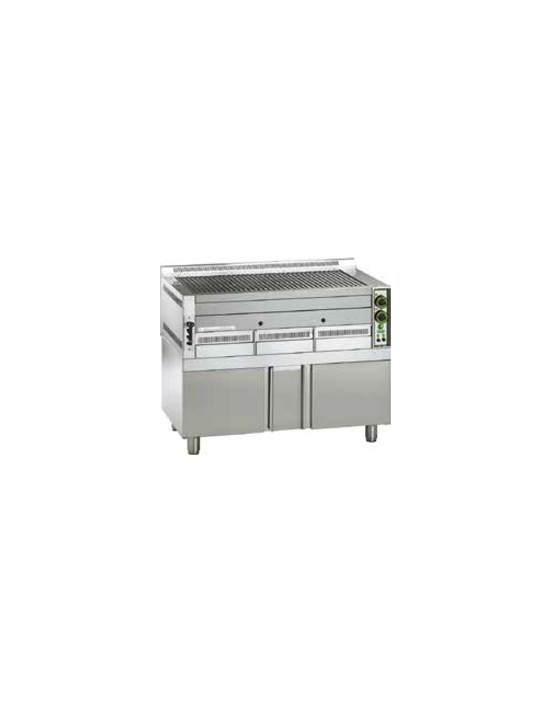 Lava stone grill - Mod. B115 - Stainless steel structure - Methane predisposition - No. 8 burners - Cooking grid dimensions 96 x 54 cm - Tilting cooking grill in 4 positions - Dimensions 114 x 70 x 38 h cm