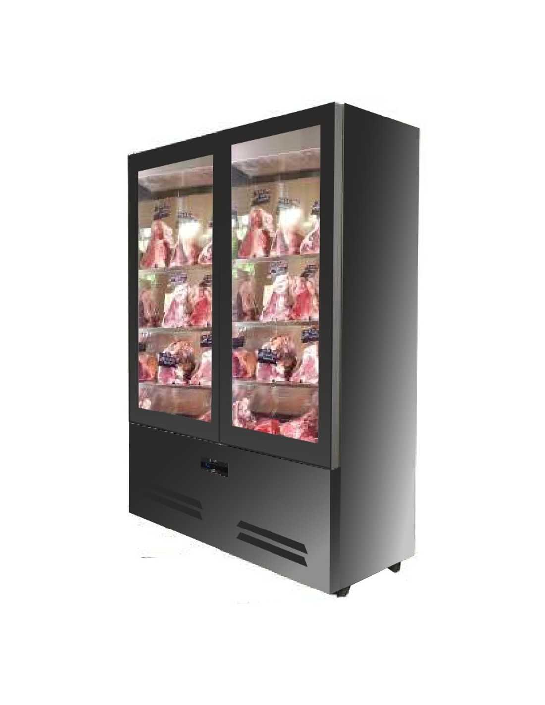 Showcase for meat - Model FLORENCE12MT - No. 2 Glass doors -Temperature -2° / +5°C - External structure in black painted sheet - Interior in AISI 304 steel - No.3 perforated shelves - Dimensions cm 125 x 67 x 196 h
