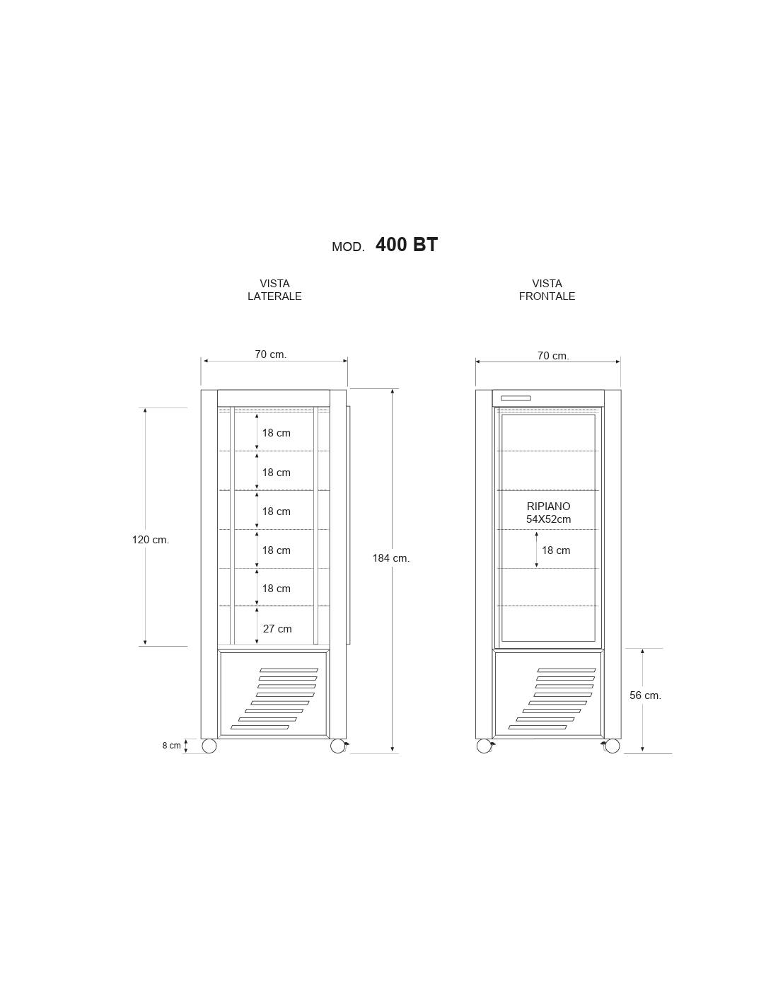 Refrigerated display case - Capacity 430 lt - cm 67 x 64 x 191h