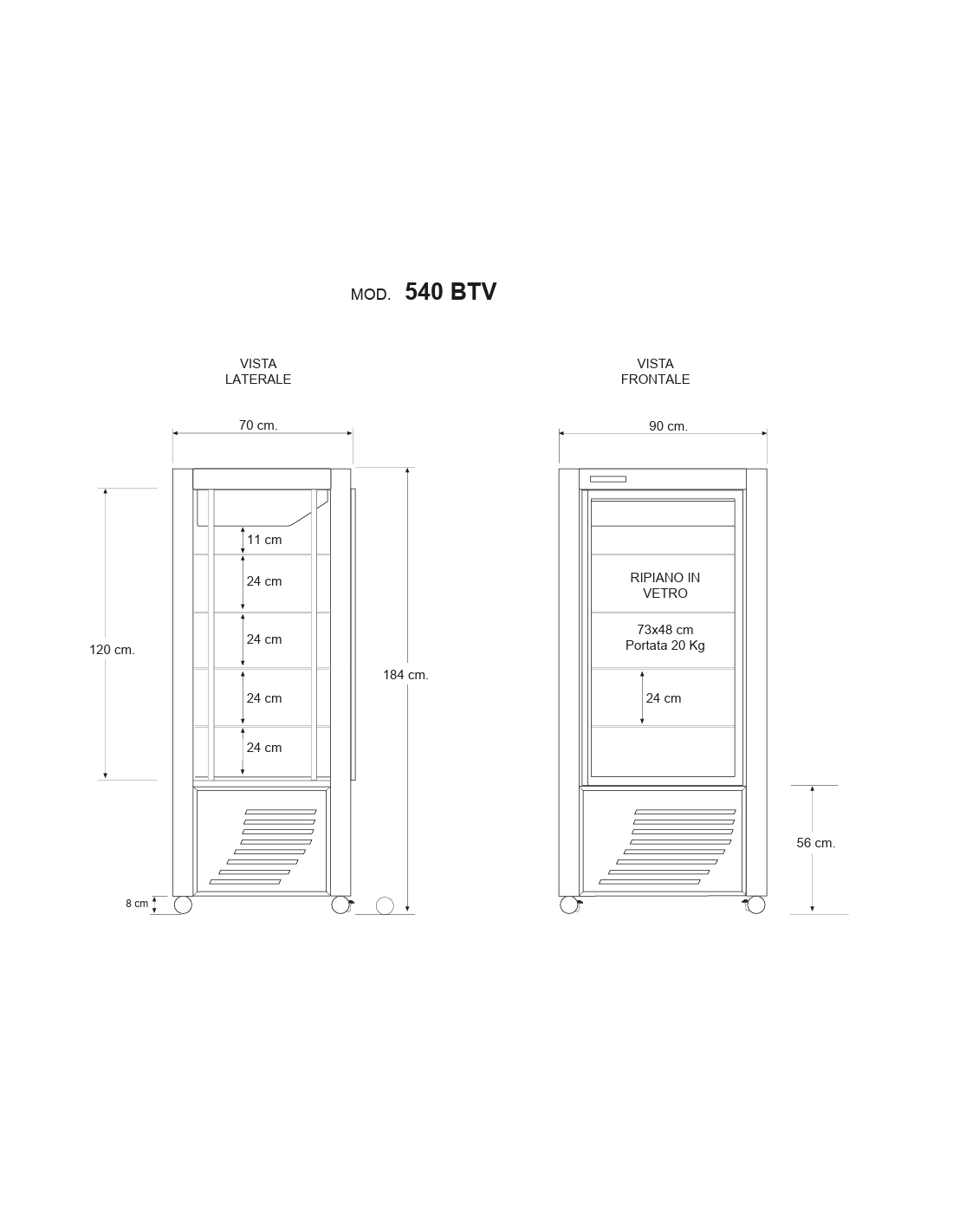 Refrigerated display case - Capacity 590 lt - cm 90 x 64 x 186h