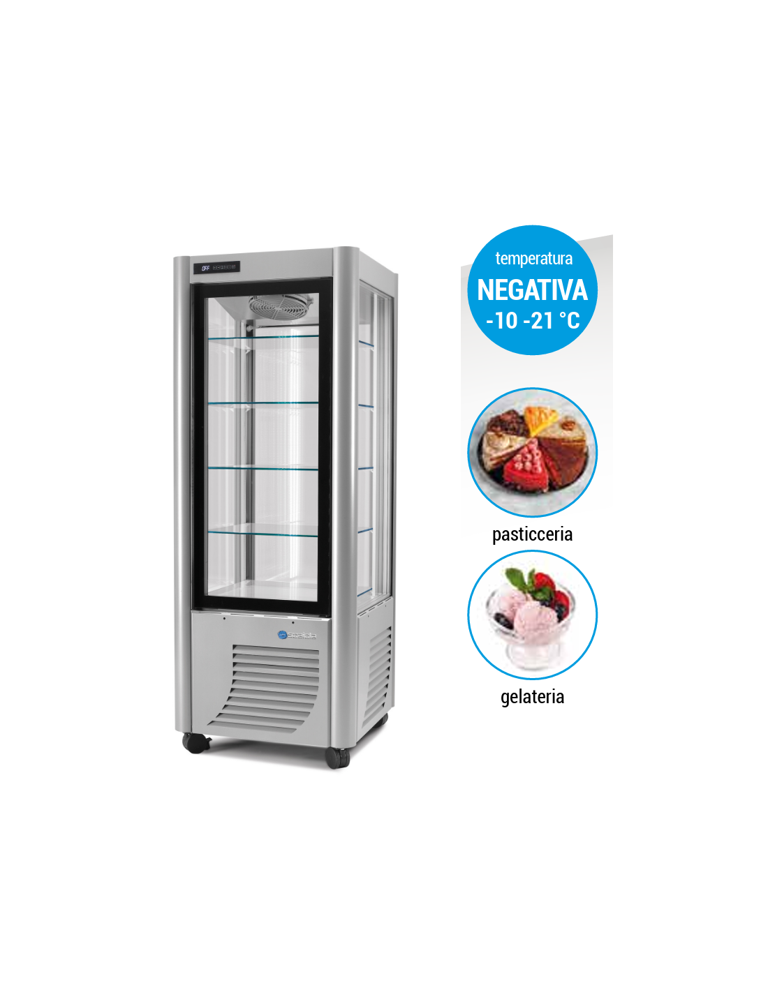 Refrigerated display case for pastry and ice cream shops - Temperature +5 / -21 °C - Capacity Litres 400 - 4-sided display - Ventilated refrigeration - LED lighting - Dimensions cm 70 x 70 x 184 h