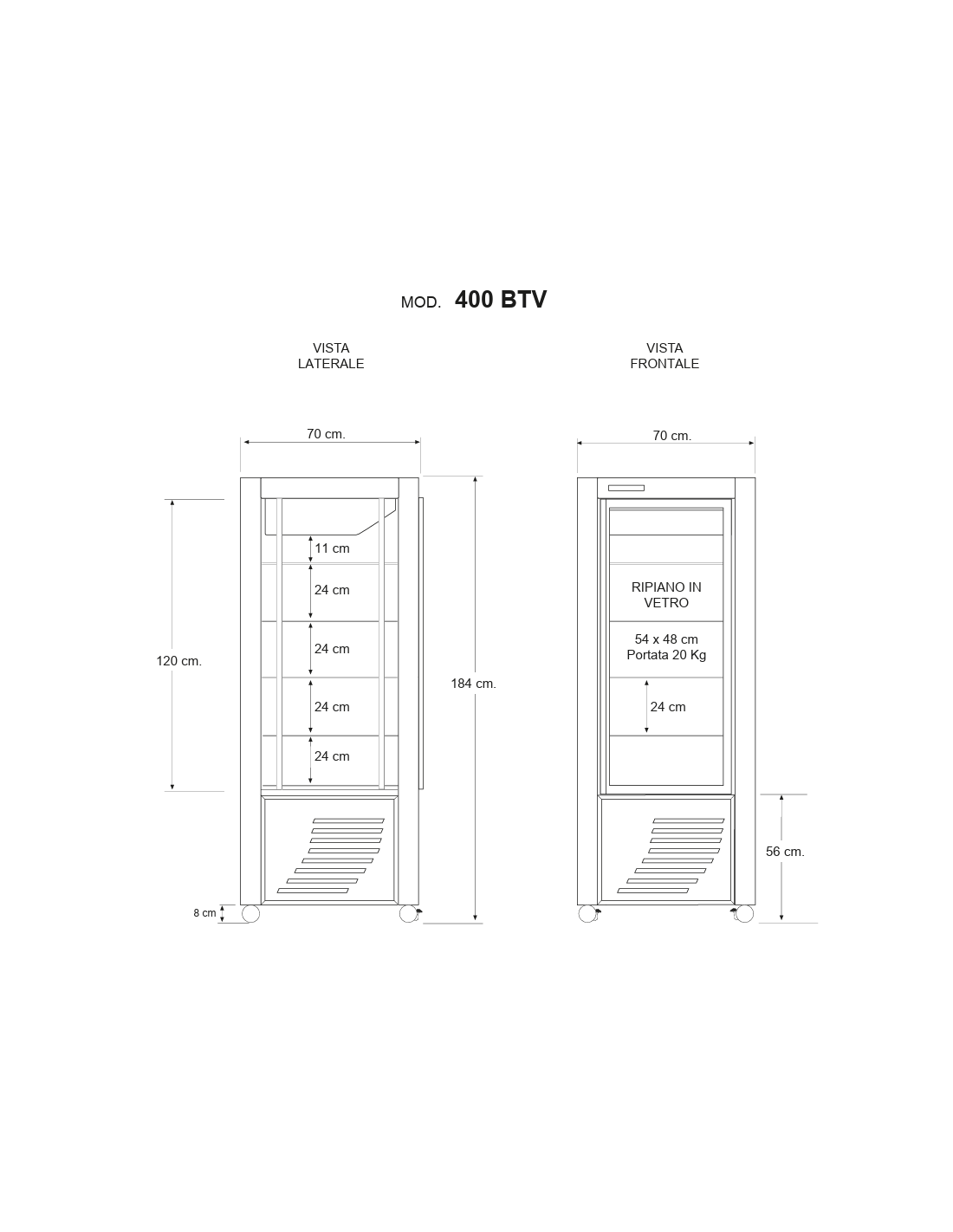 Refrigerated display case - Capacity 400 lt - cm 67 x 64 x 186h