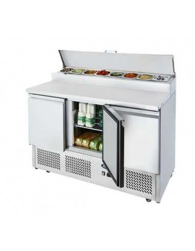 Pizza counter - Model ESL4964 - Temperature -2°/+8°C - With display cabinets 8 x GN 1/6 - No. 3 doors - Capacity liters 380 - Power W 310 - Dimensions cm 138 x 70 x 110.5 h