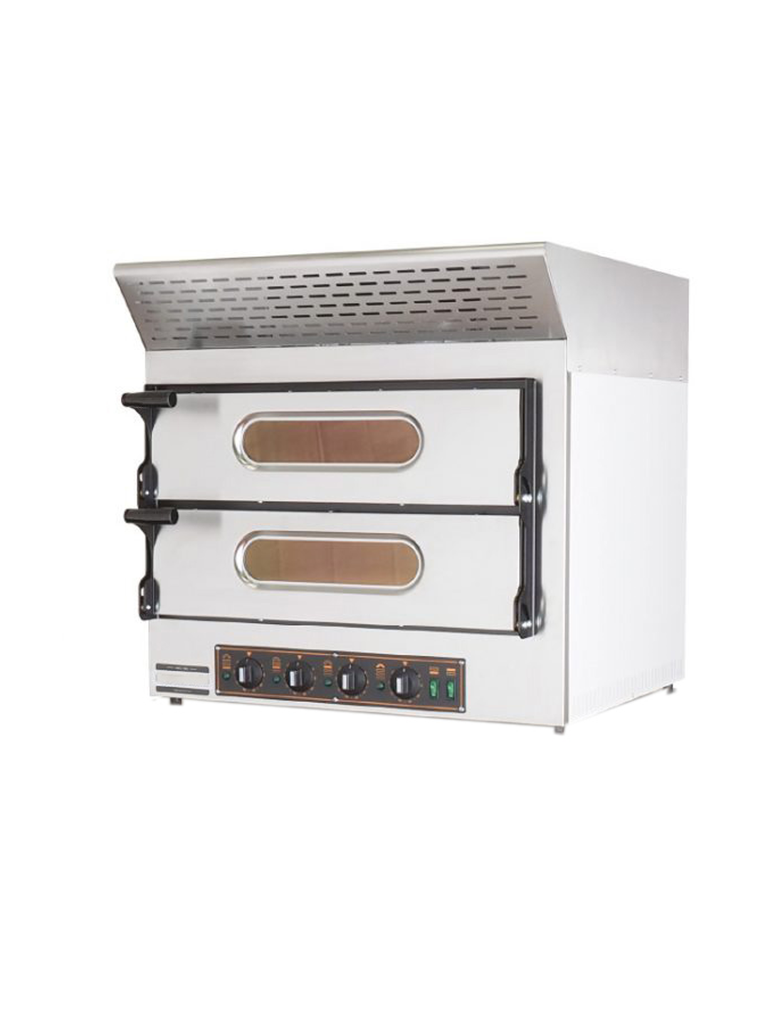 Electric Pizza Oven with hood - Model EVO2 - Capacity pizzas 4 (Ø cm 30) - N. 2 chamber cm 61 x 52 x 11 h - Temperature 50/500° - Baking stone top - Power Kw 3.2 - Monophase - Cm 74 x 60/71.5 x 74 h