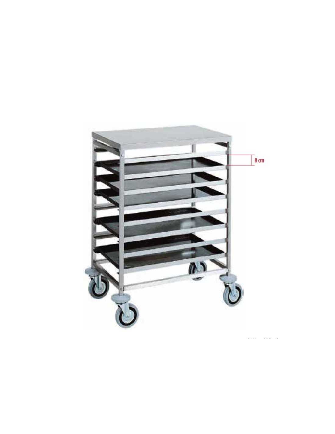 Folding trolley for pastry - Model CA1483 - Structure and guides of stainless steel - Rubber bumpers - Multidirectional wheels - Boards excluded - N° 8 sheets cm 60 x 40 - Dimensions cm 52 x 72 x 94h