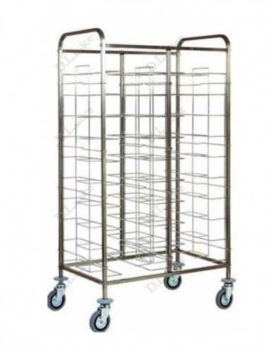 Universal tray trolley - Model CA1465 - Stainless steel frame - Chrome steel wire guide - Rubber bumpers - Multidirectional wheels - Excluding pans - Trays N°20 -Dimensions cm 95 x 62x 175h