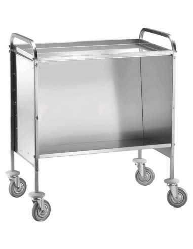 Flat transport trolley - Model CP1441C - Structure in stainless steel pipe - Plate plate shelf and panelling in stainless steel sheet - Multidirectional wheels - Number of shelves 2 - Plates 200 - Dimensions cm 91 x 57 x 101h
