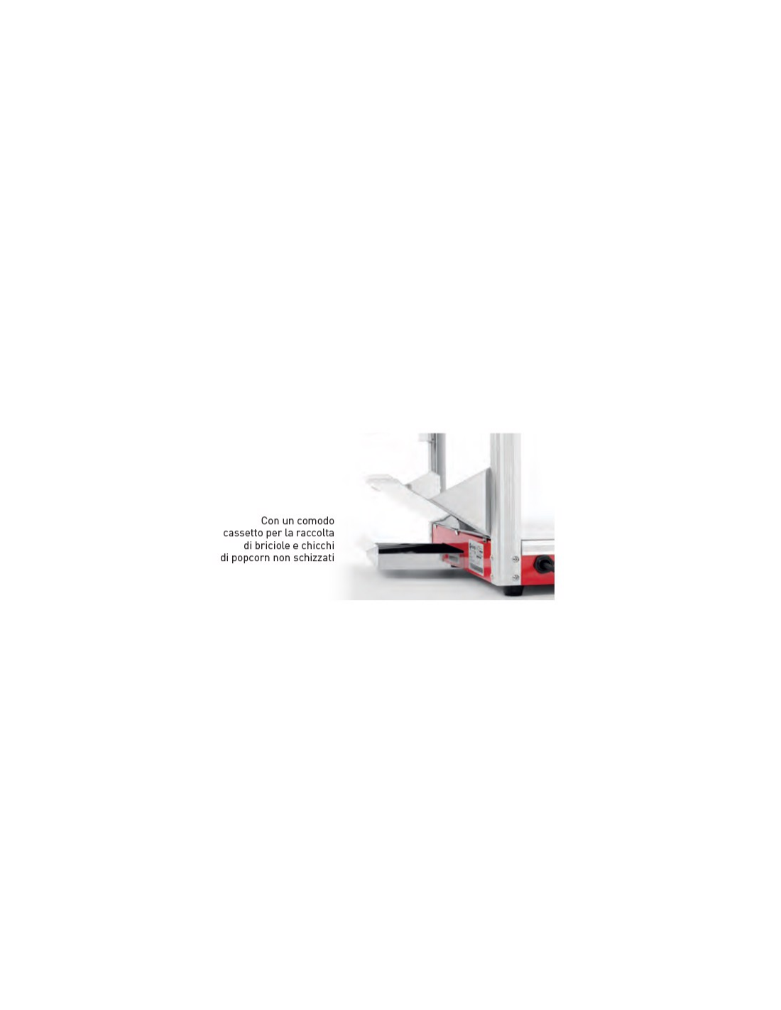 Frosted drawer under the chamber for easy disposal of unpopped kernels and crumbs. | |