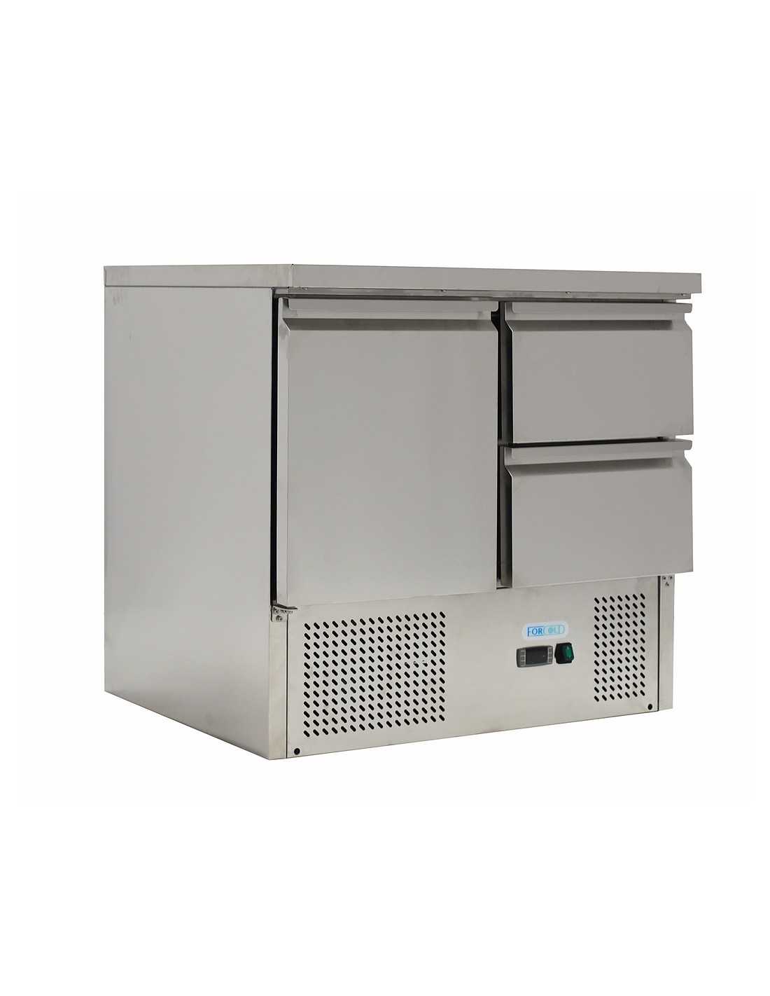 Refrigerated Saladette - Model G -S9012D-FC - Temperature +2°/ +8°C - N. 1 door + 2 drawers - Gastronorm GN 1/1 (cm 53 x 32.5) - Capacity liters 230 - Stainless steel frame AISI 201 - Static refrigeration - Dimensions cm 90 x 70 x 85 h