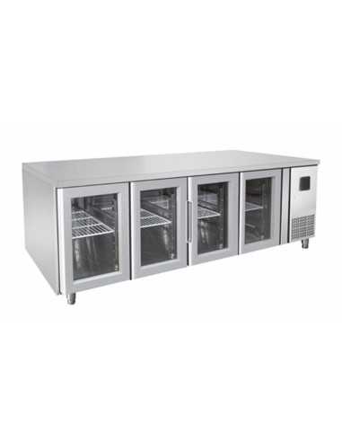 Refrigerated table - N. 4 glass doors - cm 223x 70 x 86/96 h