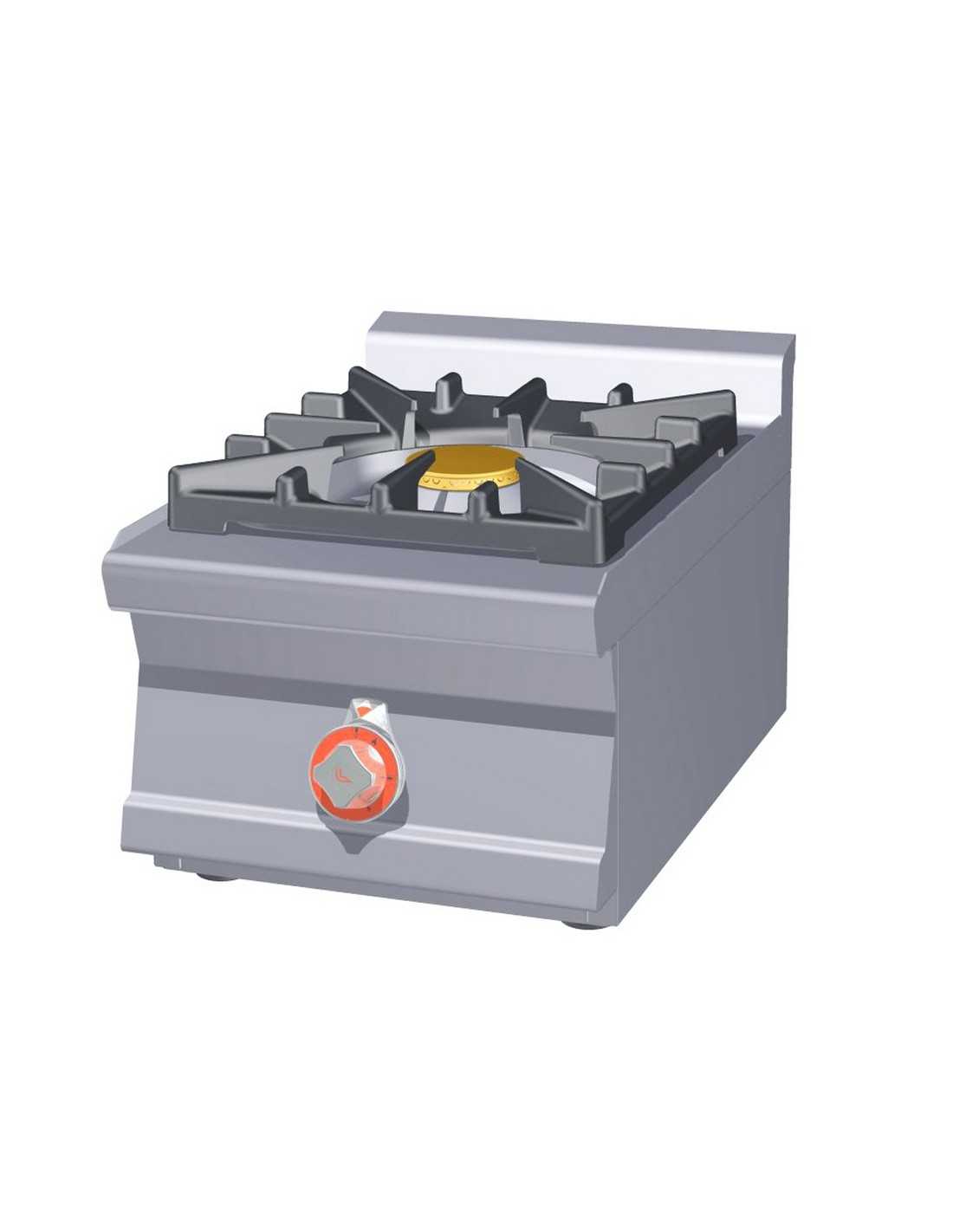 Gas cooker - Model PC1T-64G - - No. 1 fire - Power kW 10 - AISI 304 stainless steel structure - Dimensions cm 40 x 60 x 28 h