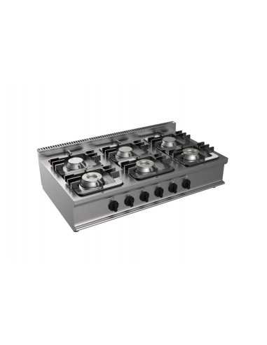 Gas hob - Mod. E7KUPG6BB3M3G - N. 6 burners - Stainless steel structure - Power 36 kW - Dimensions 120 x 70 x 27 h cm
