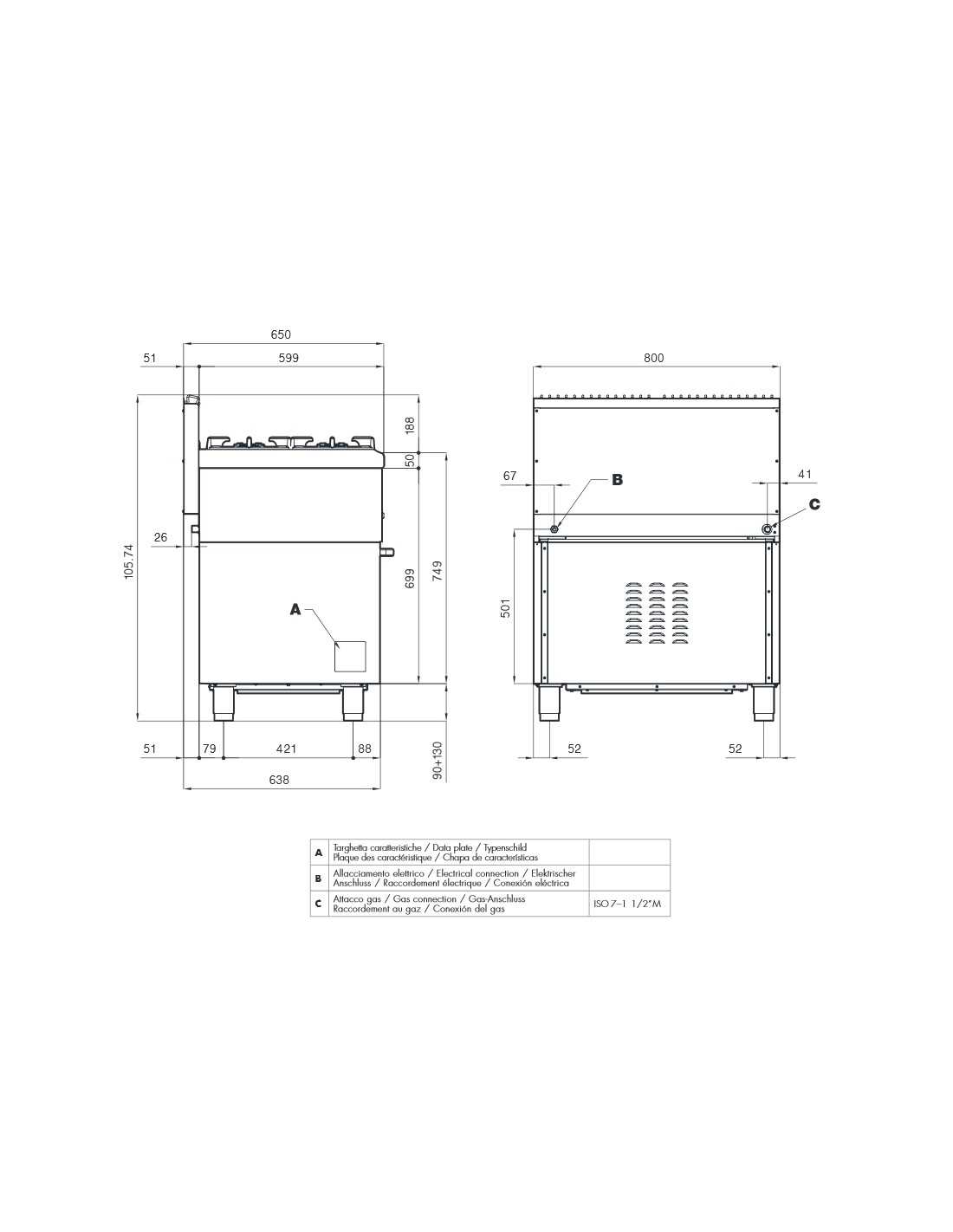 Gas cooker - Plate + 2 fires - Static gas oven - cm 120 x 70,5 x 90 h