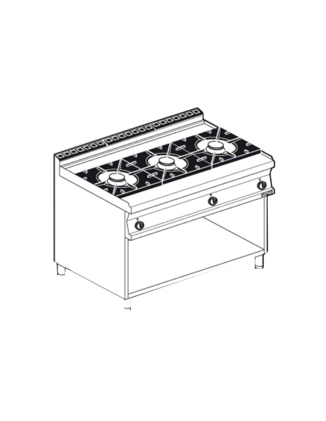 Gas cooker - Model PC3-712G - No. 2 fires - Power 2 x 10 - 1 x 7 kW - kCal/h 23.220 - Open compartment - Gas supply - Dimensions cm 120 x 70,5 x 90 h