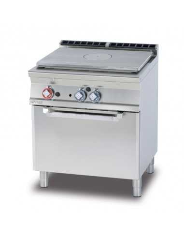 Gas cooker - Model TPFV-78GE - Plate - Size plate cm 77 x 57 - Power Kw 12 - Ventilated electric oven - Dimensions cm 55 x 36 x 34 - Power kW 5.32 - Temperature 50÷300°C - Stainless steel structure - Three-phase furnace supply V400/3/50-60Hz - Dimensions cm 80 x 70,5 x 90 h