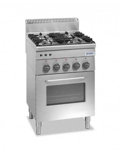 Gas cooker - Model ME066-03-010 - N.4 burners kW 2 x kW 2.7 + 2 x kW 3.15 - Electric oven kW 2.5 with glass door - Stainless steel structure - Single-phase 230V power supply - Dimensions 60 x 60 x 85 h