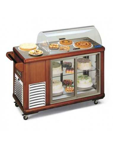 Refrigerated display for pastry - Model CARRELLINO250 - Temperature +4°+10°C - Capacity 240 liters - Wood structure - Power W 260 - Ventilate - Monophase - Dimensions cm 133.9 x 56 x 107.8 h