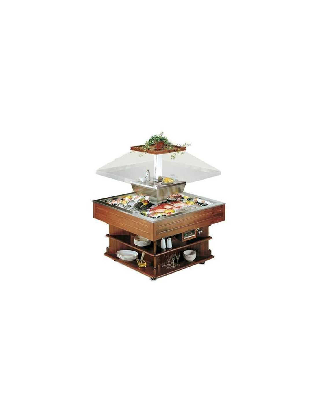 Refrigerated display island for fish - Model OASI8MFISH - Power W510 - Temperature -1/0°C - Bath Size cm 124.5 x 124.5 x 6.5 h - Wooden structure - Dimensions cm 140 x 140 x 171 h