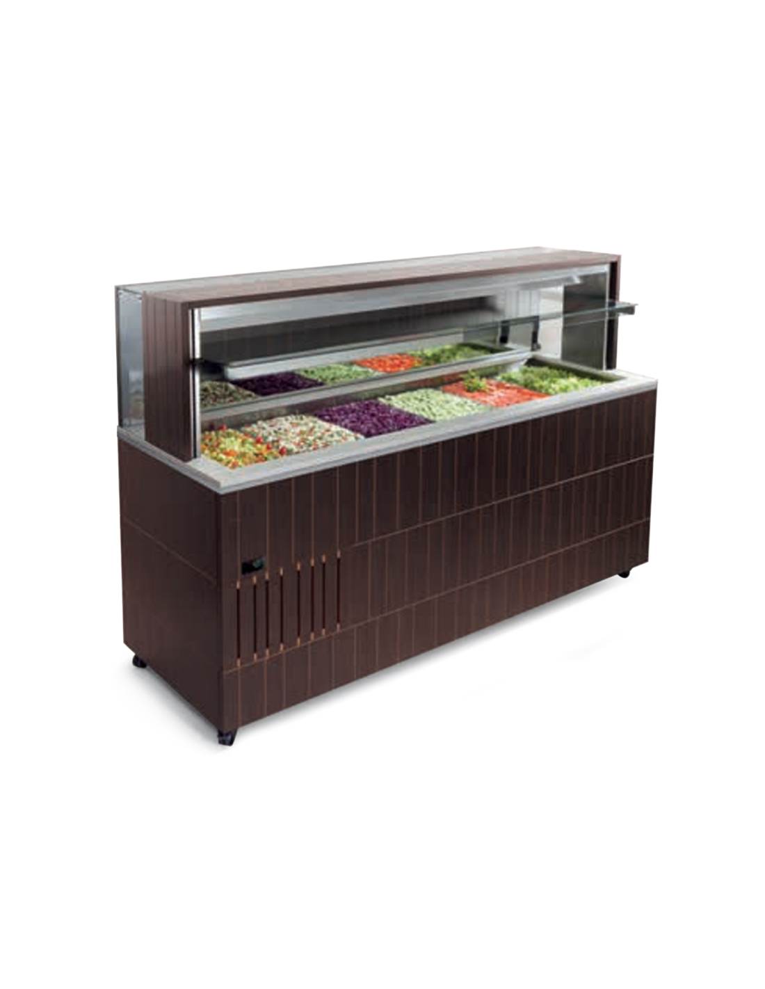 Wooden buffet island with electric dome and shelves - Temperature +3 / +10 °C - cm 172...