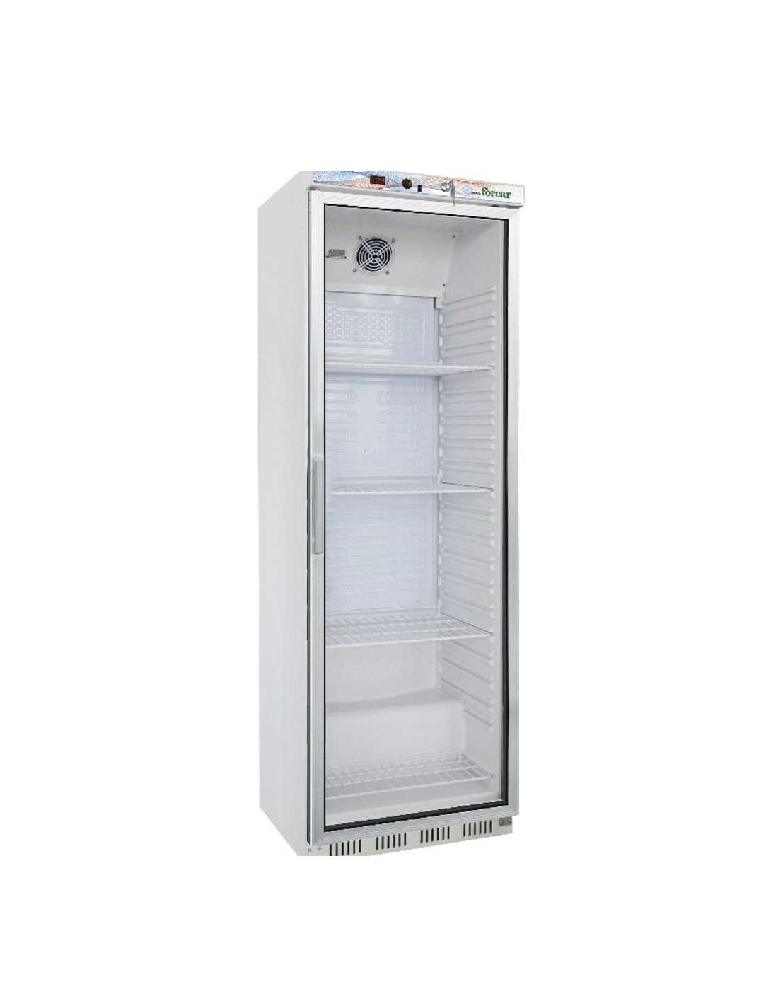 Refrigerated cabinet - Model ER400G - Temperature +2/+8°C - Static - Capacity lt 350 - With double glazing - White epoxy coated sheet metal exterior structure - ABS interior - LED lighting - Dimensions cm 60 x 58.5 x 185.5 h