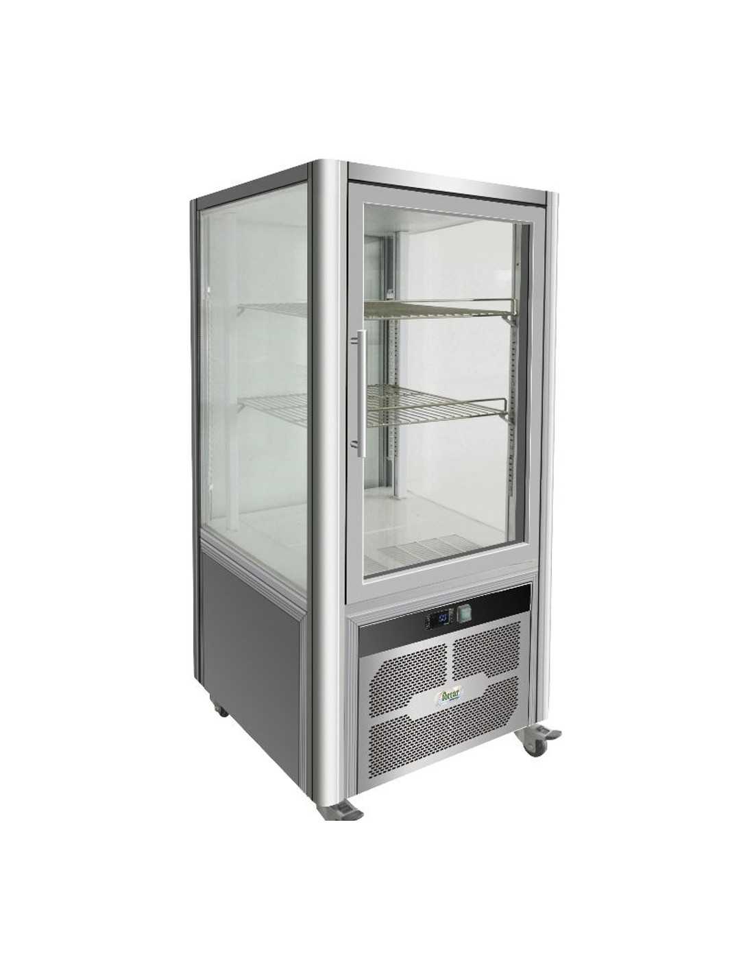 Refrigerated display case - Model VGP200R - 4-sided display - Ventilated - With double glazing - Temperature +2/+8°C - Capacity lt 200 - Acciaio inox AISI 430 - Led lighting - Dimensions 70.1 x 74.2 x 130h