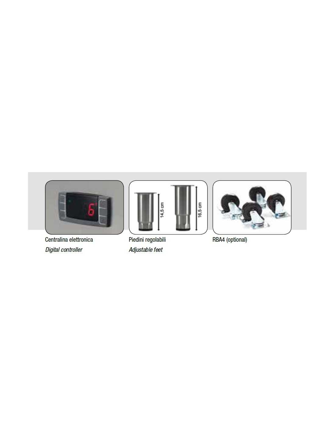 | Standard equipment: 6 plastic grids GN 2/1 + 6 pairs of guides | |