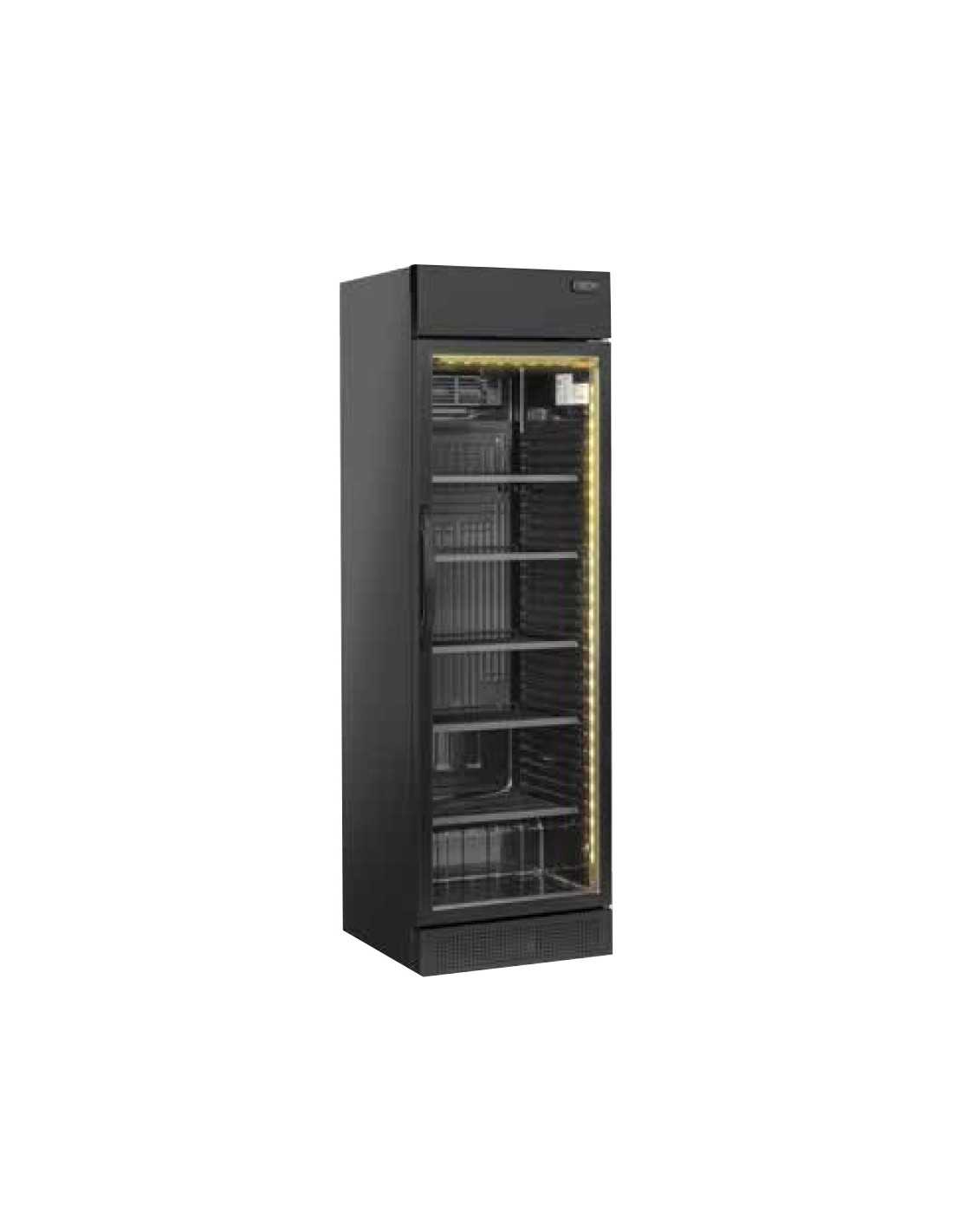 Refrigerated cabinet - Model TKG408CB - Temperature +1/+10°C - Refrigeration Roll-Bond with support fan - Black painted board - Capacity lt 372 - Digital external display - Double tempered safety glass - Size cm 59.5 x 60.4 x 198 h